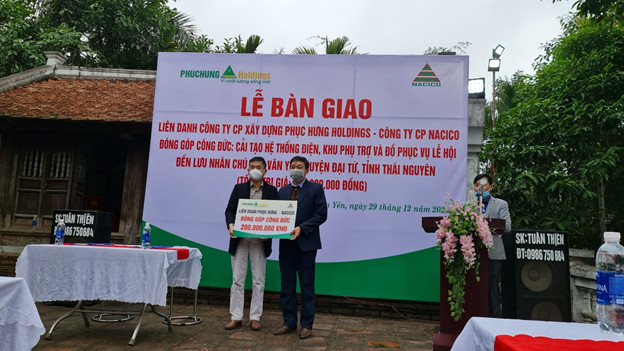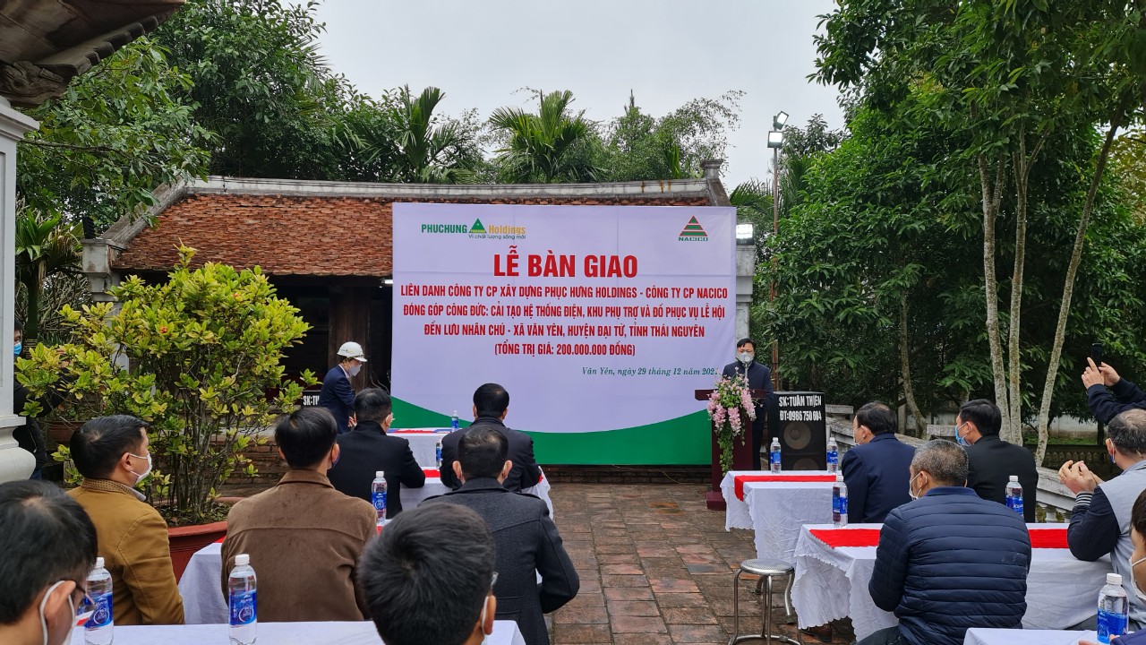 Ngày 29 tháng 12 năm 2021 Liên danh Công ty cổ phần xây dựng Phục Hưng HOLDINGS và Công ty Cổ phần NACICO phối hợp với chính quyền địa phương các cấp thực hiện lễ bàn giao đóng góp công đức: Cải tạo hệ thống điện, khu phụ trợ và đồ phục vụ lễ hội đền Lưu Nhân Chú, phía Đơn vị đóng góp công đức (bên bàn giao) gồm: Ông Lê Ngọc Thăng Chủ tịch hội đồng quản trị - Tổng GĐ Công ty Cổ phần NACICO, ông Trần Hồng Phúc - Tổng giám đốc Công ty cổ phần xây dựng Phục Hưng HOLDINGS và cán bộ nhân viên trong công ty, đại diện chính quyền địa phương gồm các đồng chí: Trần Đăng Minh - Phó chủ tịch UBND huyện Đại Từ, cùng đại diện Phòng văn hóa, đài truyền hình huyện, về phía xã Văn Yên (bên nhận bàn giao) có đồng chí Lê Quang Hanh - Bí thư đảng ủy xã, đồng chí Ngô Văn Thắng Chủ tịch xã, các đồng chí trong cơ quan ban ngành của xã và đông đảo bà con trong vùng đến tham dự.